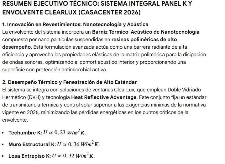 Los beneficios energéticos señalados son sólo una parte de un sistema constructivo desarrollado para que las viviendas puedan generar relevantes cantidades de energía próximamente. Lamentablemente, no podemos incluir aún otros desarrollos en esta materia.
