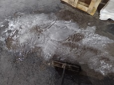 Humedezca uniformemente la superficie con un trapero, escoba plástica o esponja de cocina con el liquido diluido y deje secar hasta que se vuelva transparente y pegajoso.